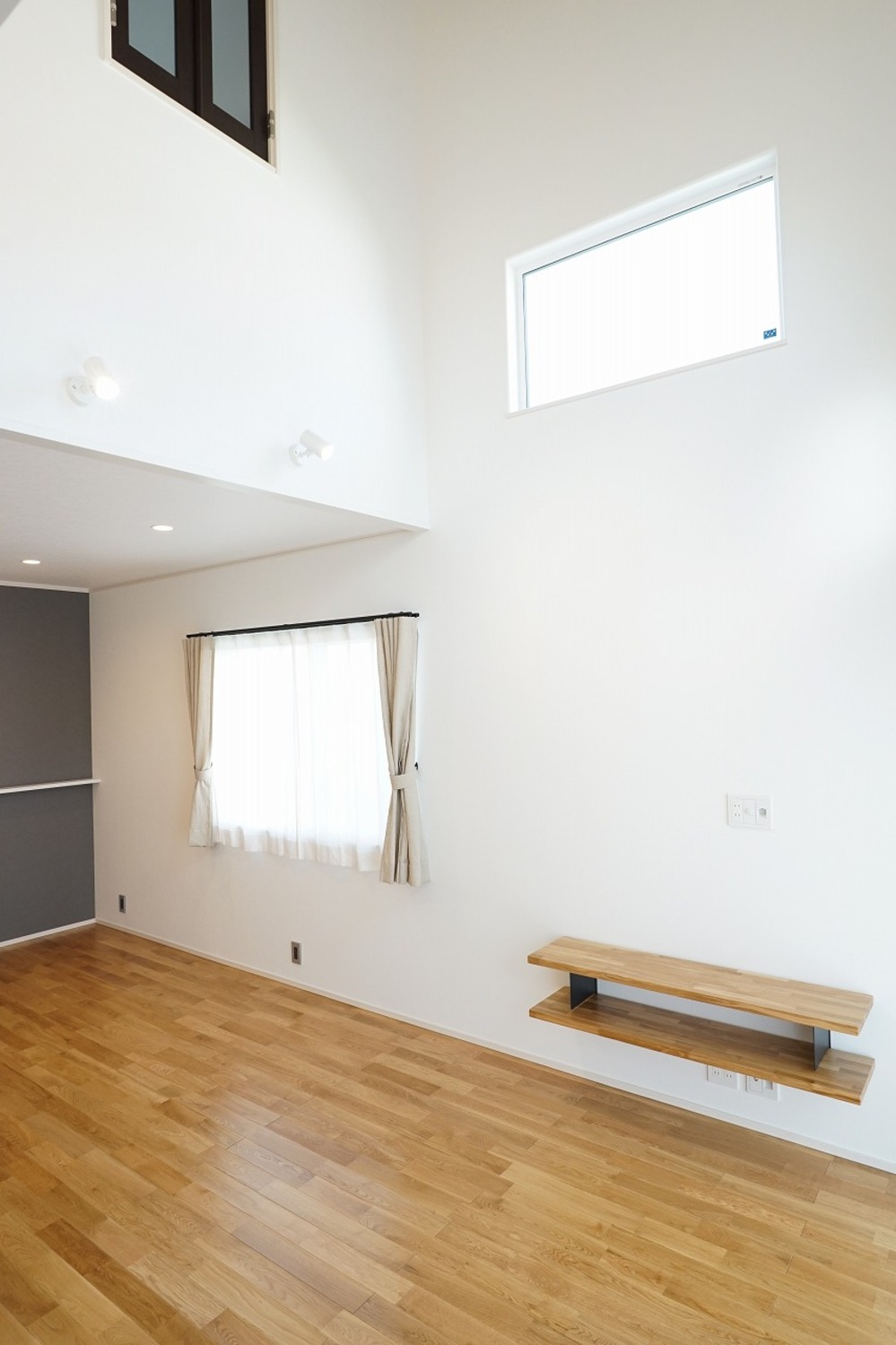リビングの吹き抜け、パントリーと土間収納のウエスタン扉、玄関ホール~リビングの内窓、オープンスタイルの下駄箱など、こだわりのつまったお家になりました。