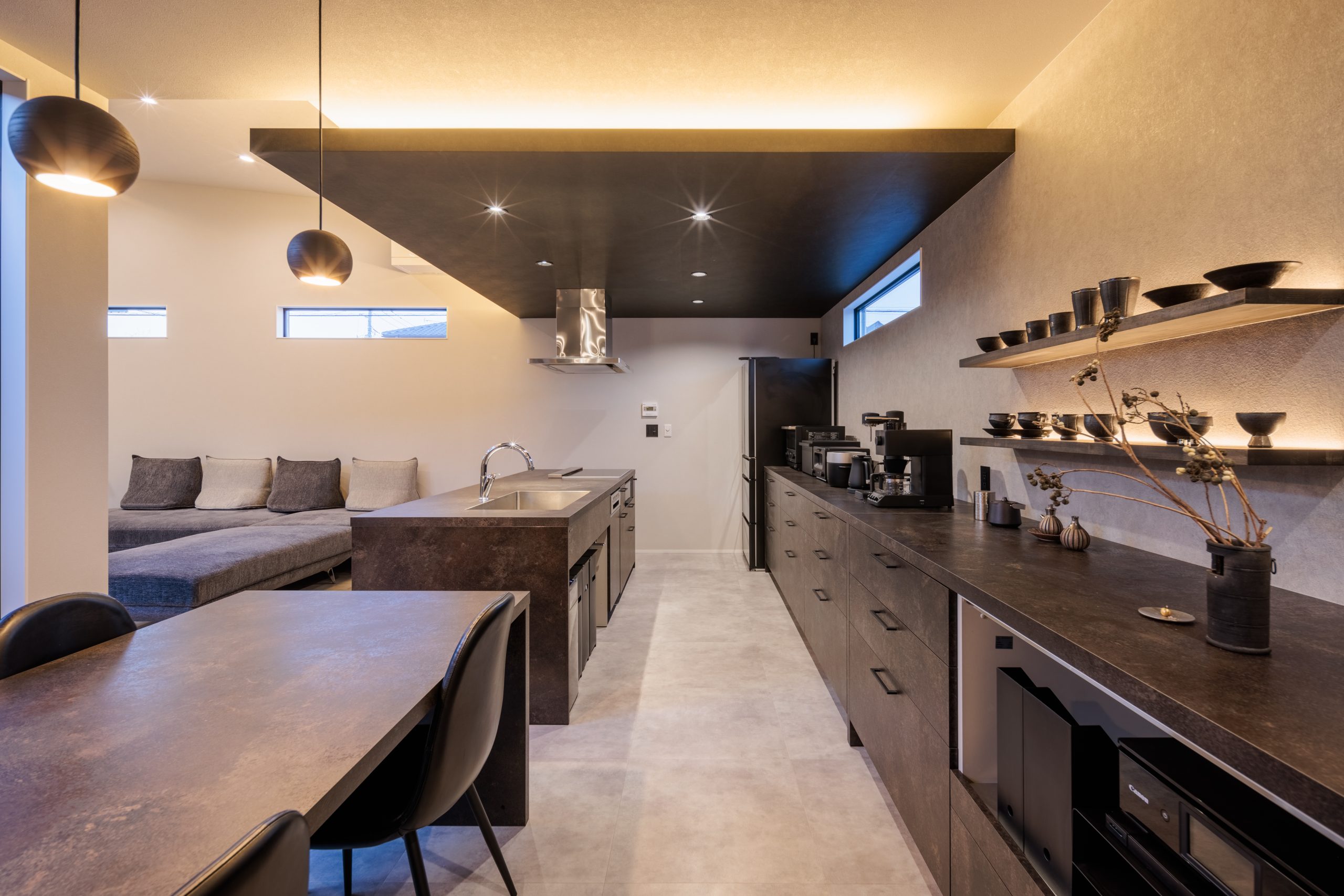 照明とデザインにこだわったキッチン。料理する時間が、家族と過ごす心地よいひとときに変わります。