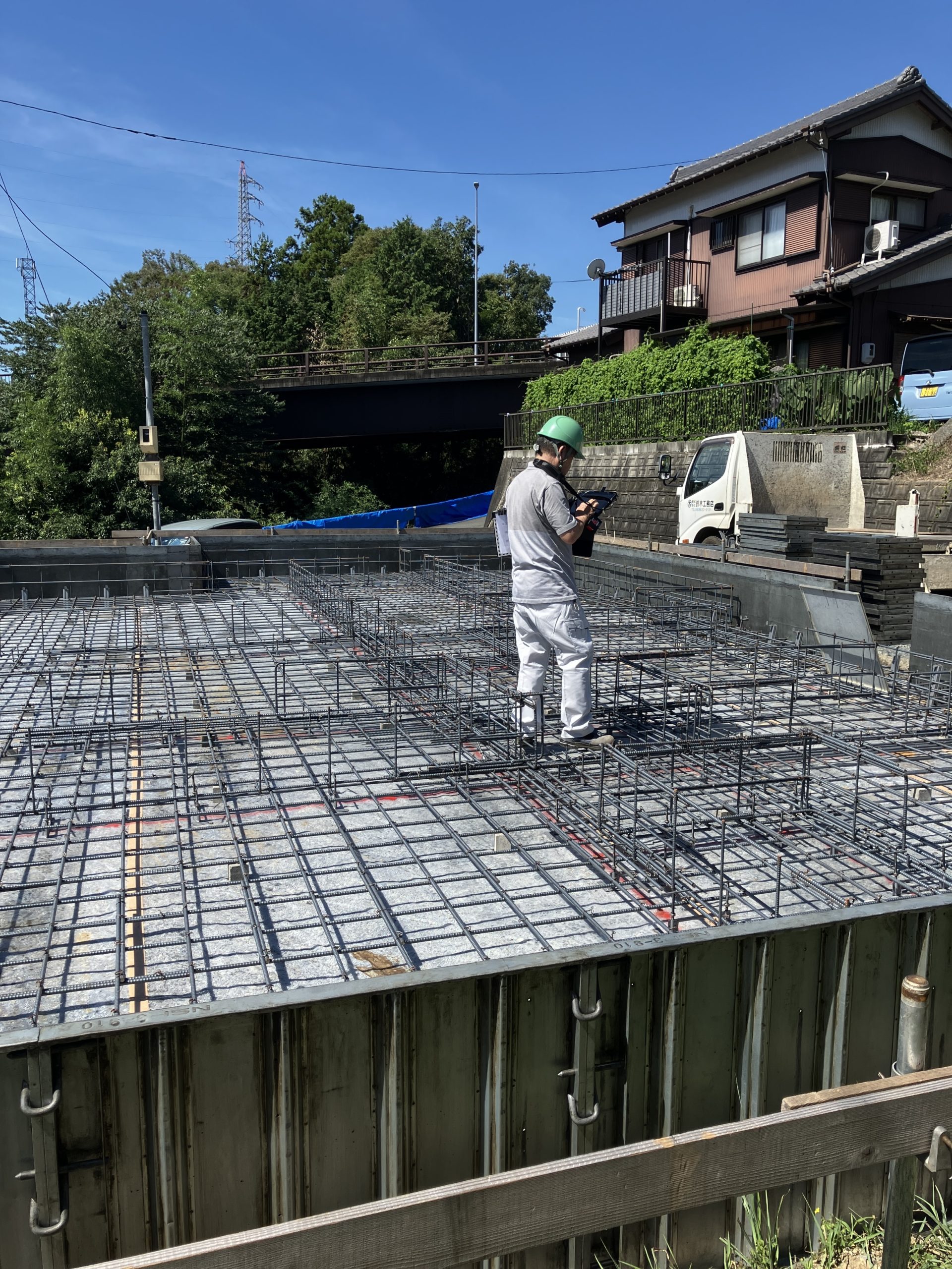 昨日出した墨と段セパに合わせて、鉄筋を組んでいきます。今週中には組み終わり、お盆休み明けに第三者機関の配筋検査を受ける予定です。