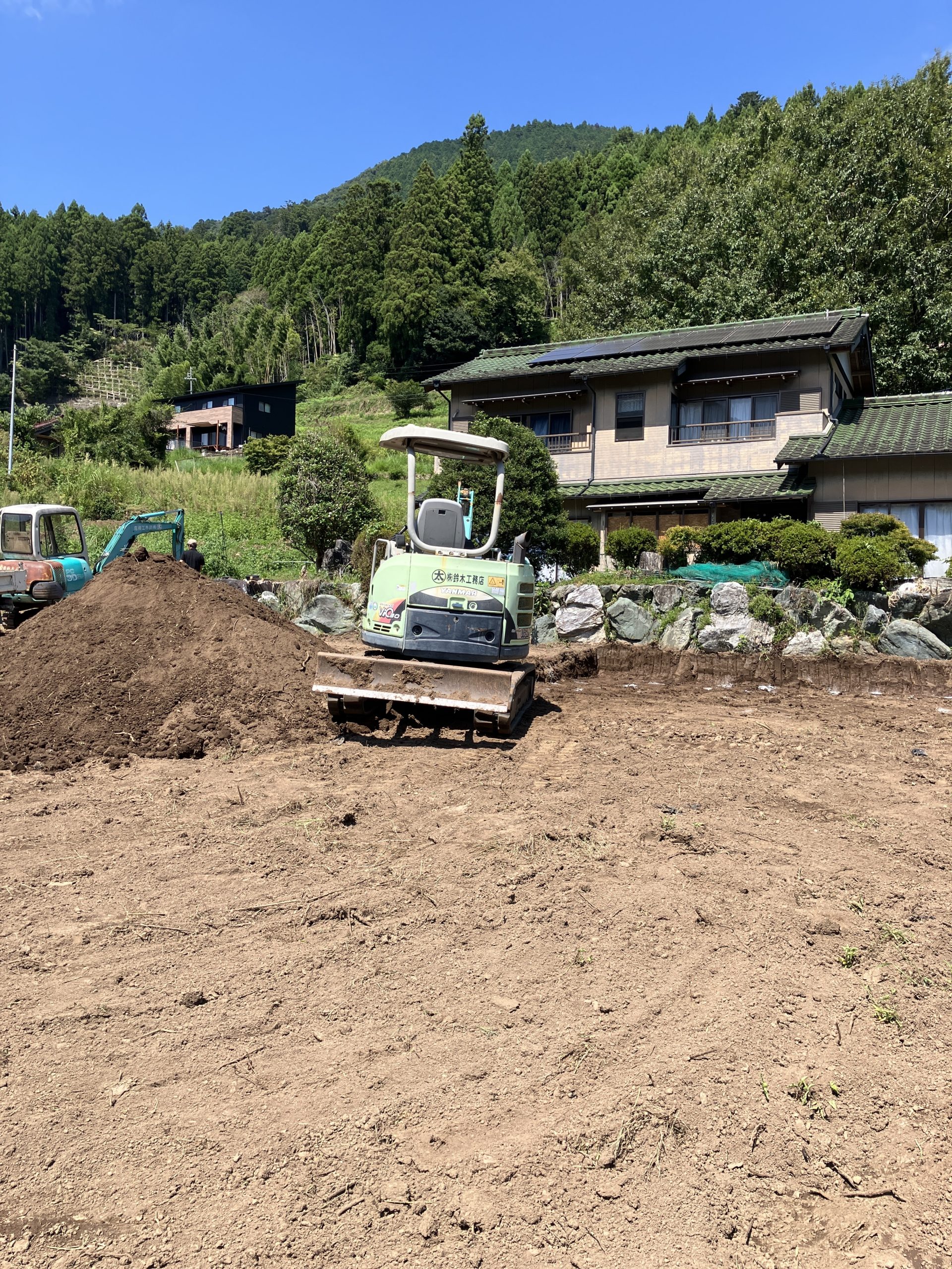 現場が多少高低差もあるので、いつもより広めに土を鋤き、地盤面を整えながら進めていきます。