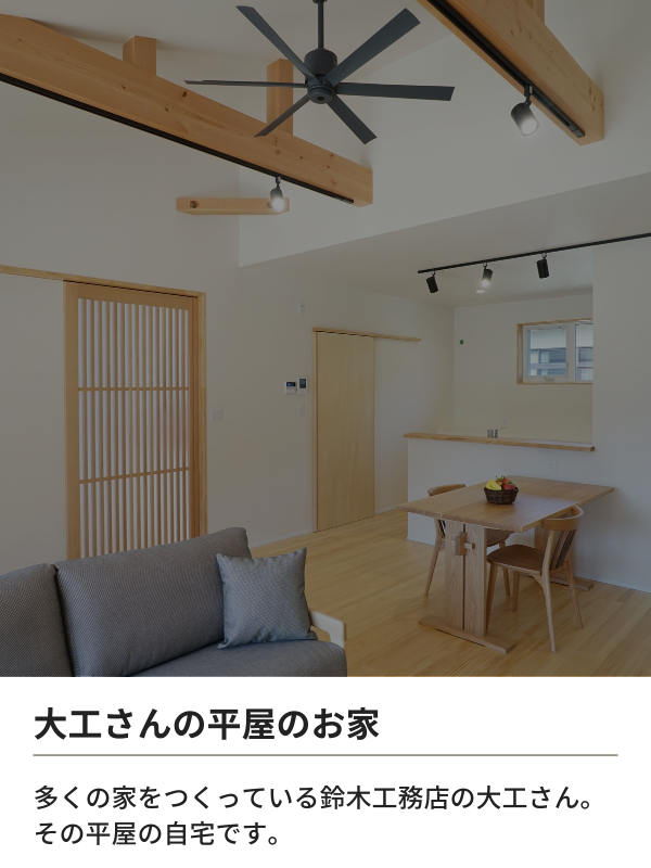 こだわってきたのは、自社大工による安心の施工です。家づくりで大事な大工工事を鈴木工務店の大工が行います。